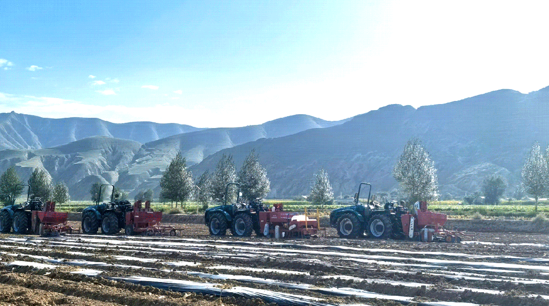 ●Navegação curva**: o trator completou autonomamente a cobertura de filme para batatas ao longo de trajetórias curvas pré-definidas, garantindo trabalho preciso e espaçamento consistente entre linhas.